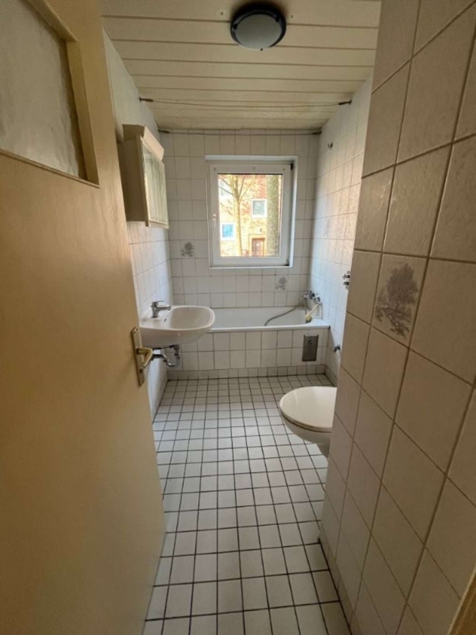 Das Badezimmer mit Fenster und Badewanne sorgt für Tageslicht und eine angenehme Atmosphäre.