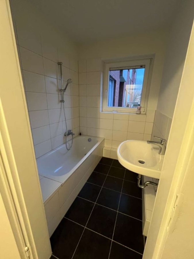 Die Wohnung präsentiert sich vollständig renoviert und einzugsbereit. In den Wohn‑ und Schlafräumen wurde hochwertiges Laminat in Holzoptik verlegt, wodurch ein harmonisches und modernes Raumgefühl entsteht. Das Tageslicht-Wannenbad ist mit weißen Wandfliesen und dunklen Bodenfliesen ausgestattet; ein separates WC mit Fenster sowie hellen Bodenfliesen und grauer Wandgestaltung ergänzt den Komfort.