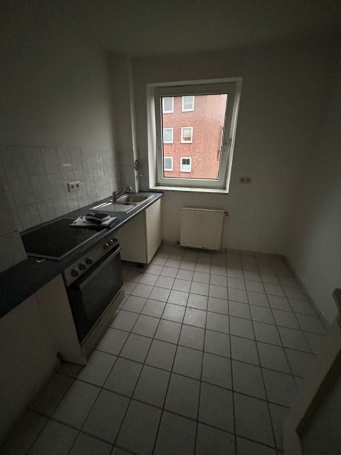 Die Wohnung verfügt über ein hell gefliestes Tageslichtbad, das mit einer Badewanne, einer Toilette sowie einem Waschbecken ausgestattet ist und eine freundliche, angenehme Atmosphäre schafft. Die separate Küche ist mit einer Einbauküchenzeile inklusive Backofen und Cerankochfeld versehen. Eine graue Arbeitsplatte, helle Bodenfliesen sowie ein passender Fliesenspiegel sorgen für ein modernes Gesamtbild. Zudem sind eine Aussparung und ein Anschluss für eine Waschmaschine vorhanden. Der Raum bietet ausreichend Platz für die Erweiterung der Küchenschränke nach eigenen Bedürfnissen.