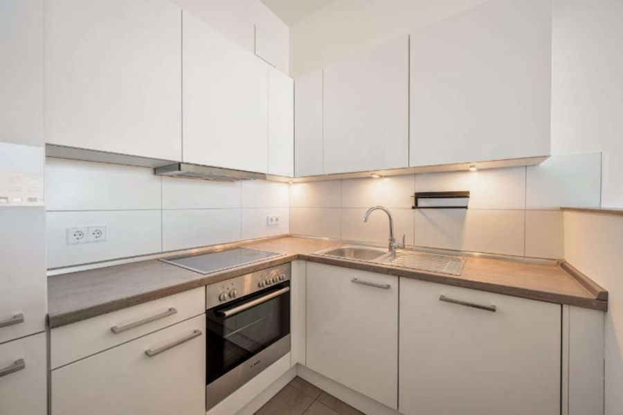 Ein besonderes Highlight der Wohnung ist die moderne, stilvoll gestaltete Einbauküche. Sie überzeugt nicht nur durch ihr ansprechendes Design, sondern auch durch ihre hochwertige und durchdachte Ausstattung. Hochwertige Elektrogeräte – darunter ein Kühlschrank, ein Geschirrspüler sowie eine effiziente Dunstabzugshaube – bieten ideale Voraussetzungen für ambitionierte Hobbyköche und ermöglichen komfortables, zeitgemäßes Kochen auf hohem Niveau.