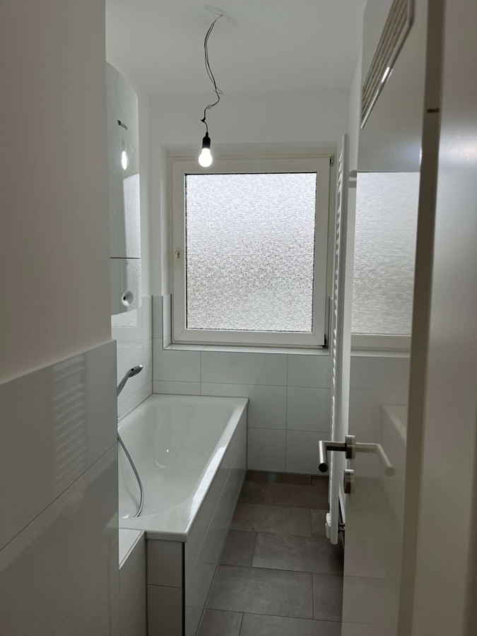 Die Wohnung verfügt über 4 Zimmer, eine kleine Küche und ein Tageslichtbad mit Badewanne. Die Wohnung wurde komplett renoviert und einen neuen Boden, sowie ein neues Badezimmer mit moderner Handtuchheizung erhalten.