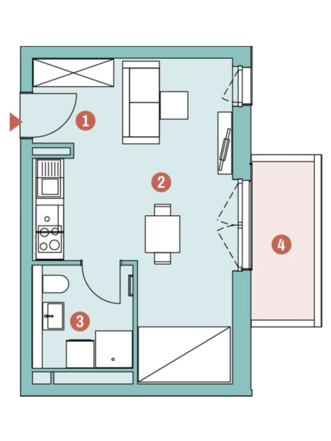• sehr funktional geschnittenes 1-Zimmer-Apartment