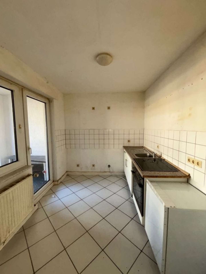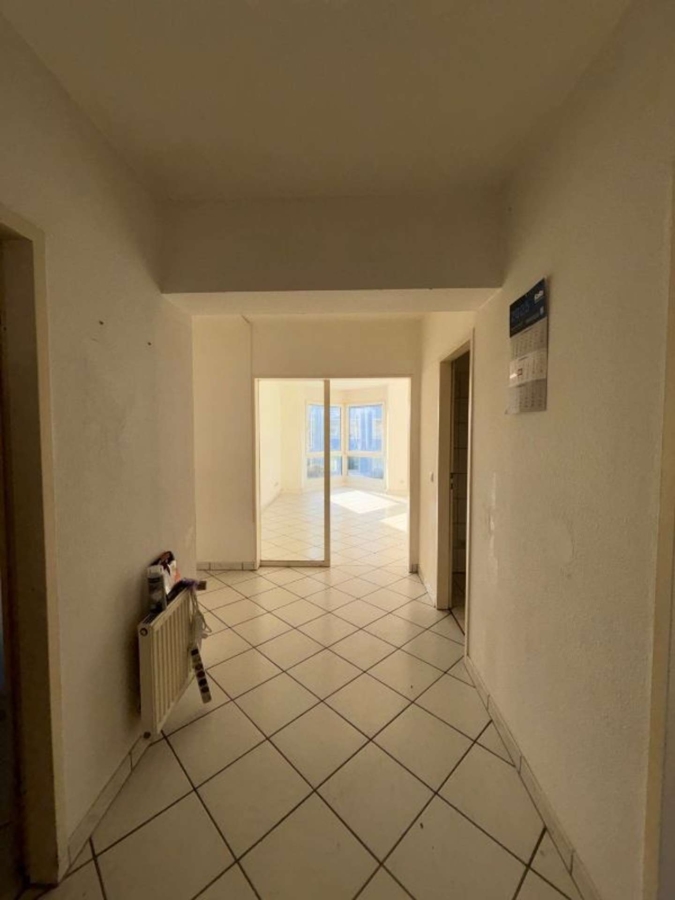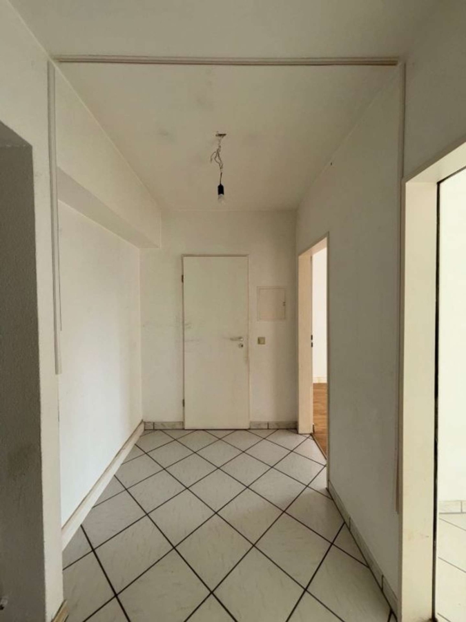 Der Flur verbindet alle Räume effizient miteinander. Durch das helle Fliesenbild wirkt er freundlich und einladend. Insgesamt bietet die Wohnung solide Grundsubstanz und gute Nutzungsmöglichkeiten.