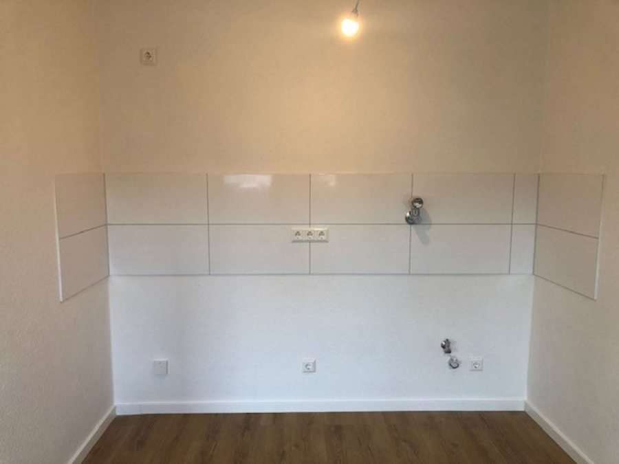 - Große, helle Küche mit neuem, großformatigem Fliesenspiegel – ideal für Ihre Einbauküche