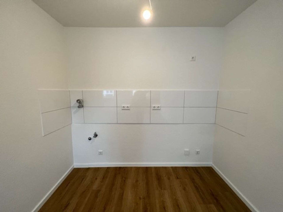 Im Wohnbereich befindet sich die neu geflieste Küchennische, ideal für eine kleine Küchenzeile.