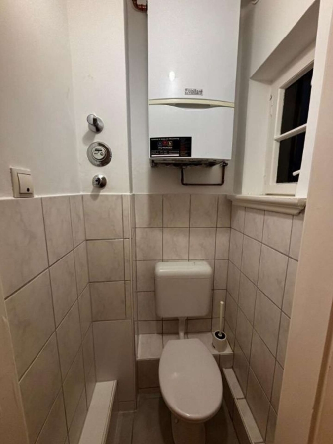 Die Wände sind mit Raufasertapete versehen und in Weiß gestrichen, was für eine freundliche Atmosphäre sorgt. Die aufgearbeiteten Holzdielen verleihen dem Wohnbereich einen warmen, natürlichen Charme. Das Badezimmer ist in zwei Bereiche unterteilt: ein separates WC mit Waschbecken sowie eine Dusche mit Tageslichtfenster und zusätzlichem Waschbecken – ideal für Komfort und Licht. Bitte beachten Sie: Es ist eine Küchenzeile vorhanden inkl. Ceranfeld und Backofen. Ein Kellerraum steht nicht zur Verfügung.