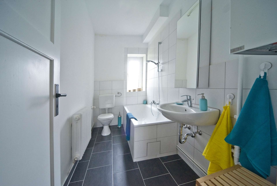 Diese Wohnung verfügt über ein hell und freundlich gefliestes Tageslichtbadezimmer mit Badewanne. Alle Wohnräume sind in Raufaser weiß tapeziert und mit hochwertigem Laminat ausgestattet. Eine tolle Einbauküche mit E-Herd und Ofen ist bereits vorhanden. In der Küche können Sie ein gemütliches Esszimmer einrichten. Die Gasetagenheizung sorgt für angenehme Wärme. Das Exposé enthält Bilder unserer Musterwohnung mit Einrichtungsbeispielen.